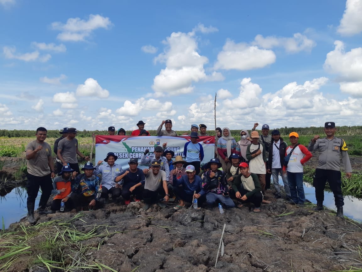 Barito Kuala- Dalam rangka mendukung program ketahanan pangan Nasional, Polsek Cerbon bersama Gapoktan gelar penanaman jagung Kegiatan ini dilaksanakan pada Rabu, (1/10/2025) di Area lahan milik Sdr. Riduan di Desa Simpang Nungki Kec. Cerbon Kabupaten Barito Kuala (Batola).